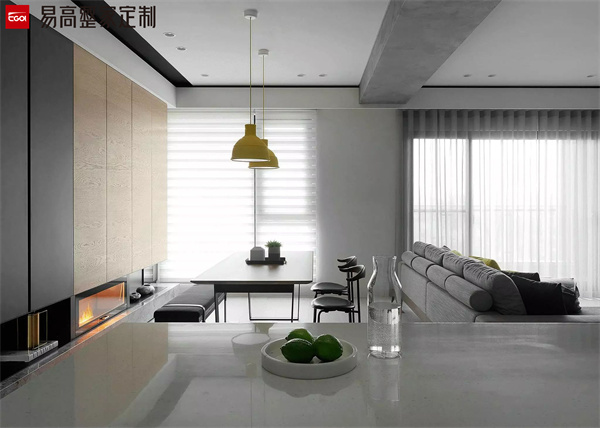 對于小戶型來說,空間的布局設(shè)計很影響視覺效果。如果客廳和餐廳進(jìn)行隔斷,空間變分成幾個布局明顯的幾個板塊,整個空間的通透性以及采光效果都會比較差,而且視覺上隔斷會給人一種非常擁擠的感覺??梢钥紤]將客廳和餐廳打通,不進(jìn)行隔斷,廚房也采用開放式設(shè)計,動線設(shè)計合理,每個區(qū)域都進(jìn)行空間一體化設(shè)計,整個空間的采光以及通透性都會變得更好,一體化的布局設(shè)計在視覺上也會更加和諧統(tǒng)一。