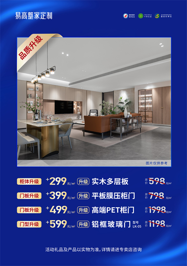 注:活動(dòng)最終解釋權(quán)歸易高整家定制所有,具體活動(dòng)內(nèi)容以店面咨詢(xún)?yōu)闇?zhǔn)。