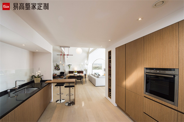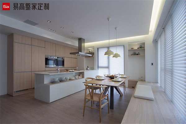 現在的生活條件越來越好了,對于家裝的要求也越來越高了。因此家里也添置了不少的廚房電器和家具。現在廚房里的大大小小電器不少,為了讓廚房的收納更加整潔合理,除了需要合理規劃廚櫥柜的布局設計之外,餐廚一體化設計可以有效的利用空間,將電器都規劃設計成嵌入式設計,合理有效地收納這些家電,并且還可以定制收納柜儲物,讓餐廚一體化設計可以實用又美觀。