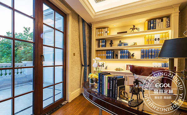 書房作為主人讀書寫字的場合,關于照明和采光的需求很高。人眼在過于強和弱的光線中作業,都會對視力發生很大的影響,寫字臺最佳放在陽光充足但不直射的窗邊。 寫字臺通常與窗戶成直角而設。