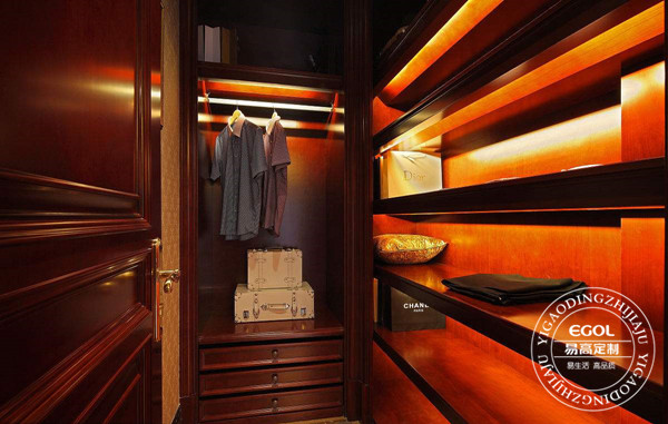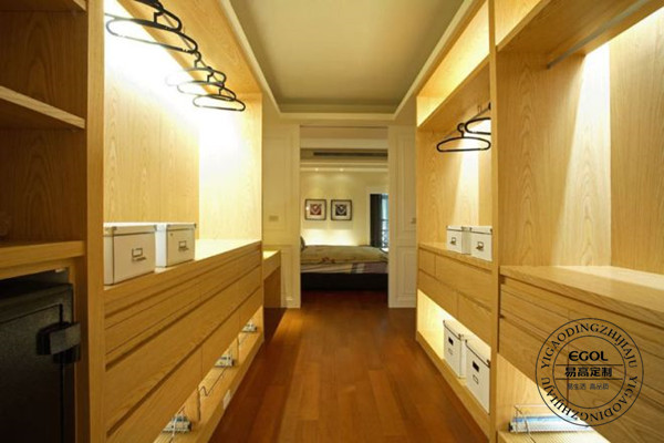 因衣帽間一般都是封閉式的,考慮到潮濕季節可能會對衣物等造成損壞的因素,因此要做到衣帽間的氣溫干燥,裝透氣扇等方法,或者將門做成帶有透氣與臥室相連,可以達到很好的維護衣帽間內空氣環境的健康。