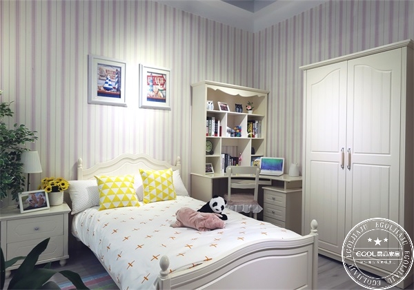 ▲同樣是休息與學習一體的空間,轉(zhuǎn)角書桌的設(shè)計簡約舒適,環(huán)保板材定制,為孩子們打造一個健康的成長環(huán)境。