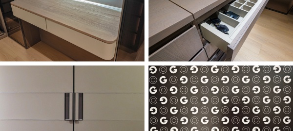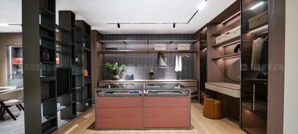 開(kāi)放式壁掛系統(tǒng)與個(gè)性logo背板形成較大的視覺(jué)沖擊力,呈現(xiàn)獨(dú)一無(wú)二的奢雅質(zhì)感。玻璃、皮質(zhì)、金屬元素融合柔光氛圍,每個(gè)角落都散發(fā)慵懶高級(jí)感。